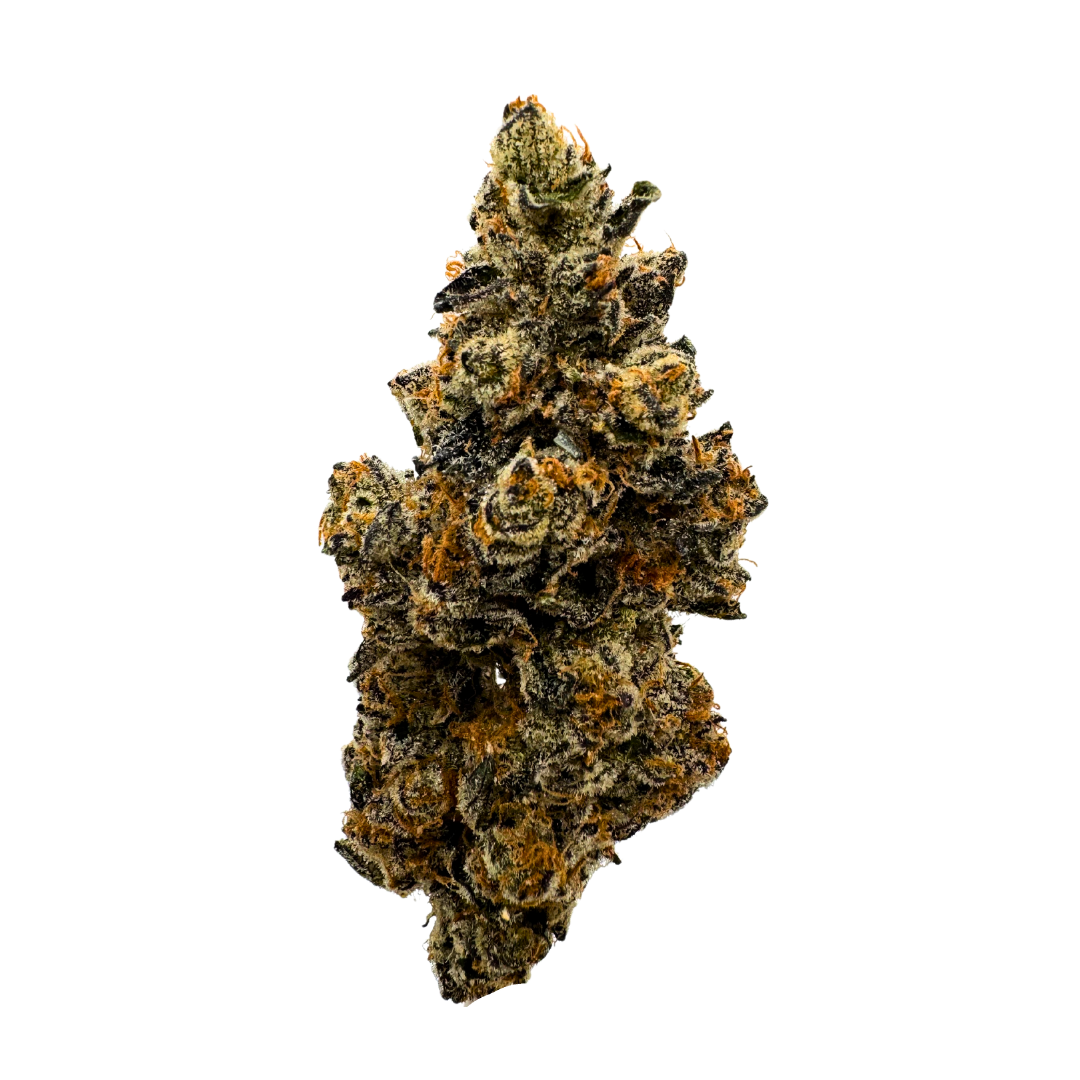 Platinum Dosi is a gassy, dessert-leaning hybrid in the Do-Si-Dos family, grown by Wheelchair Weed Craft Cannabis. Buds are dense and heavily frosted, with deep forest-green and purple tones, threaded with fiery orange pistils. Crack the can and you’ll get a wave of dank gas, earthy kush, and sweet cookie dough, rounded out by hints of citrus and spice. On the palate, it leans into skunky OG, creamy vanilla, and a subtle herbal finish that lingers. Dominant terpenes include myrcene, limonene, beta-caryophyllene, and farnesene, supported by linalool, humulene, and pinene for a rich, layered nose.
